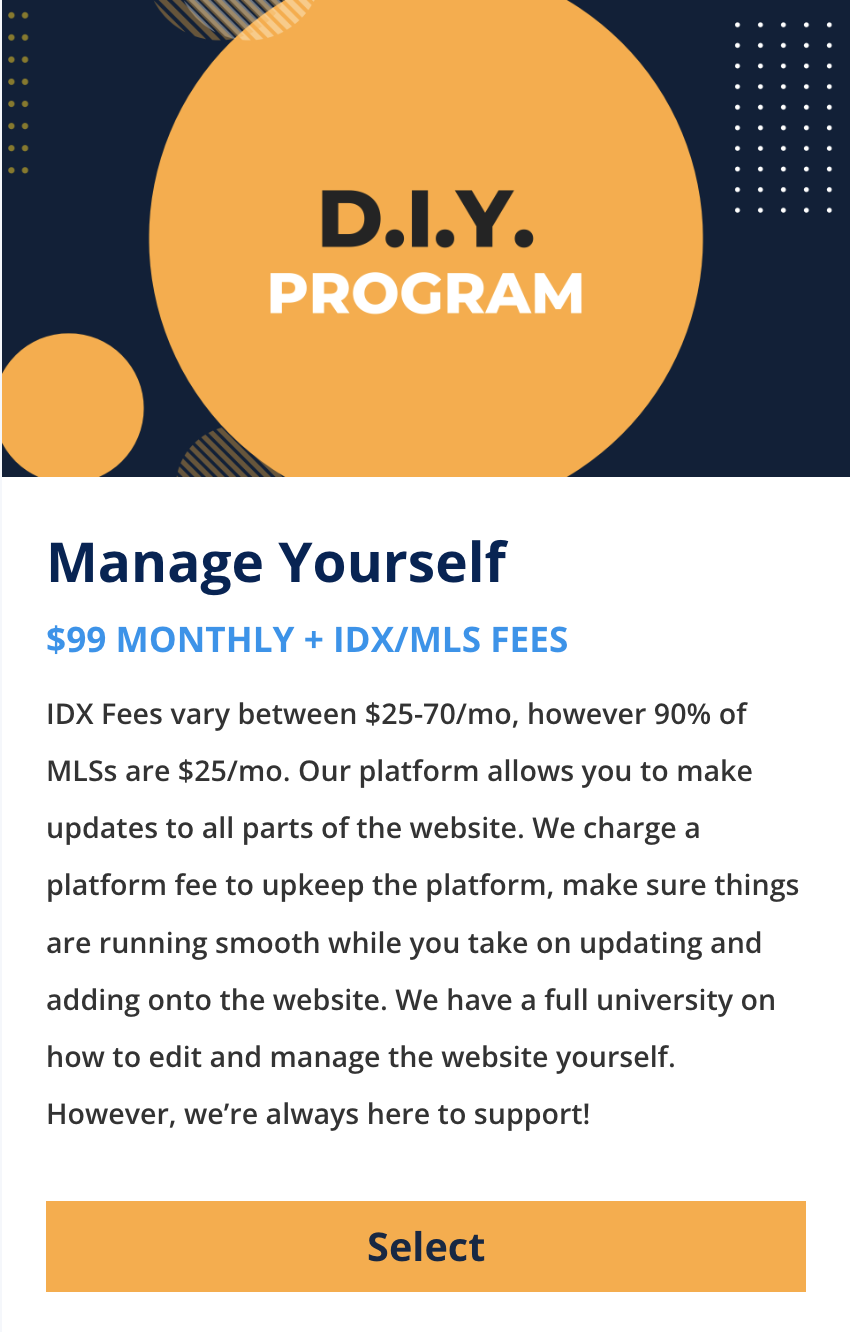 | Agent Type | Single Agent Website, Partner Website, Team Website |